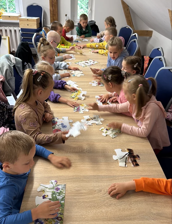 W czerwcu przedszkolaki odwiedziły Pasiekę Edukacyjną w Starym Bojanowie. Dowiedziały się tam, na czym polega praca pszczelarza, jak dbać o pszczoły i dlaczego są one tak ważne w przyrodzie; poznały też proces powstawania miodu. Czas umiliły gry, zabawy i zadania związane z pszczołami.