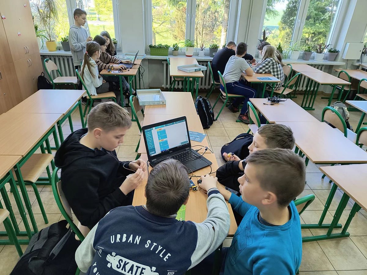 W bieżącym roku szkolnym uczestnicy Koła Młodego Konstruktora wielokrotnie korzystali z pomocy dydaktycznych zakupionych w ramach programy „Laboratoria Przyszłości”. Zarówno przedstawiciele klasy czwartej, jaki i piątoklasiści konstruowali roboty z klocków Apitor X. Powstały zdalnie sterowane: katapulty, maszyny do rysowania, a także samochody wyścigowe. Dodatkowo młodsi uczestnicy koła podejmowali wyzwania z robotem edukacyjnym Photon, a ich starsi koledzy zaznajamiali się z działaniem mikroprocesorów. Pracowali z zestawami BeCREO Kit, poznając podstawy programowania i elektroniki.