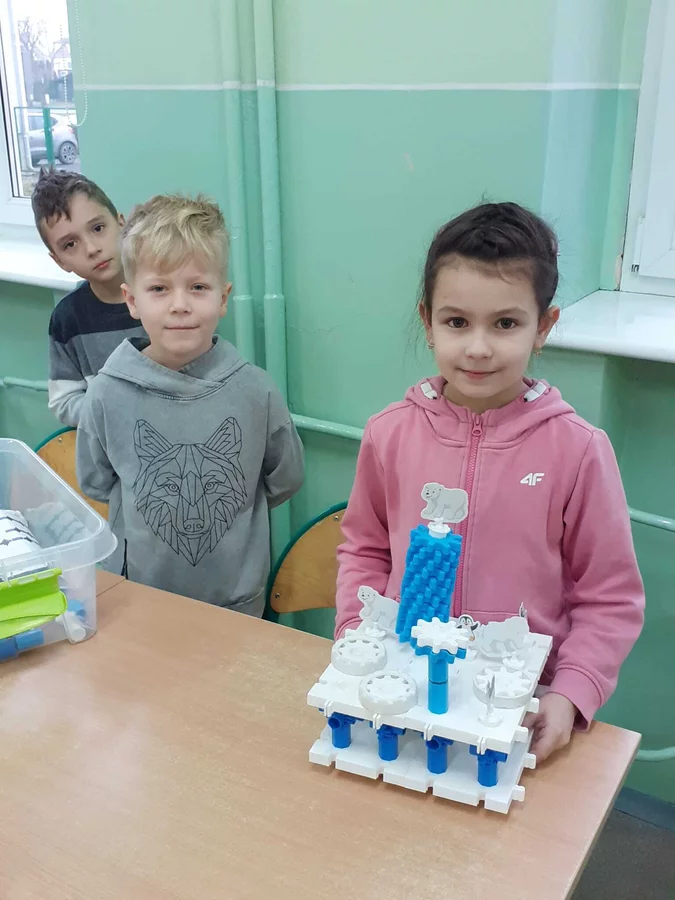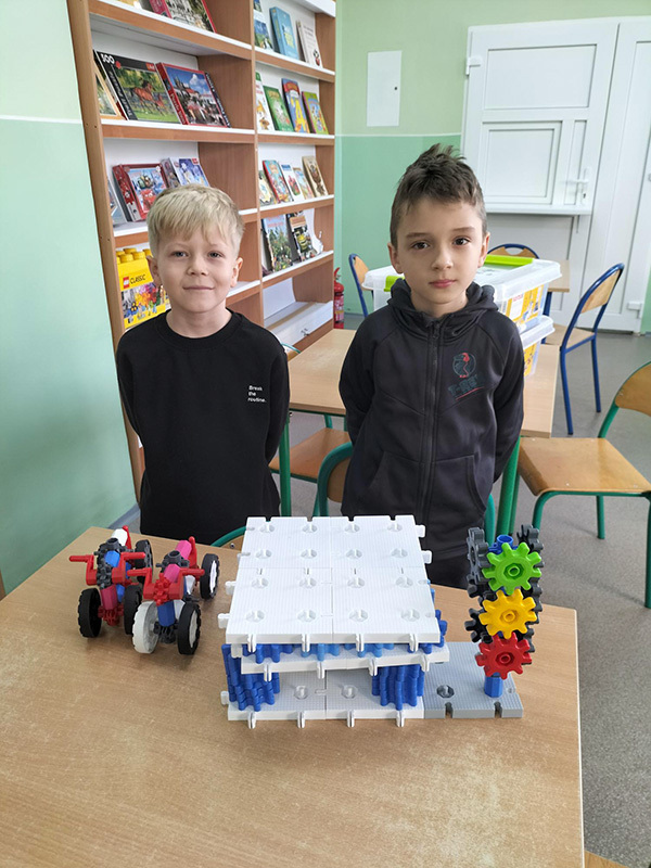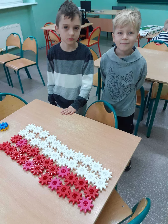 W trakcie zajęć świetlicowych uczniowie bardzo chętnie korzystali z klocków Korbo – budowali ciekawe konstrukcje, wpadli nawet na pomysł odtworzenia polskiej flagi.
