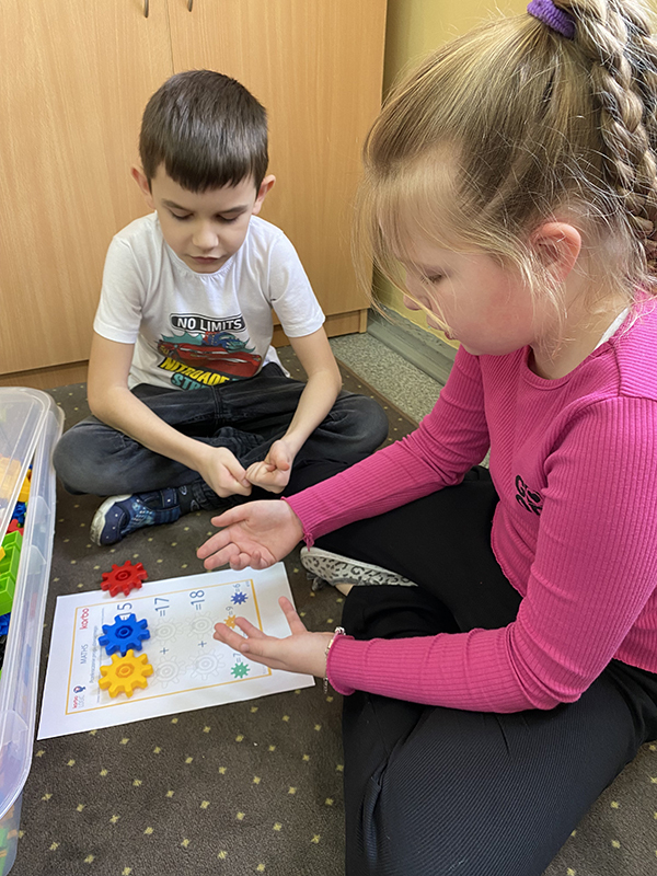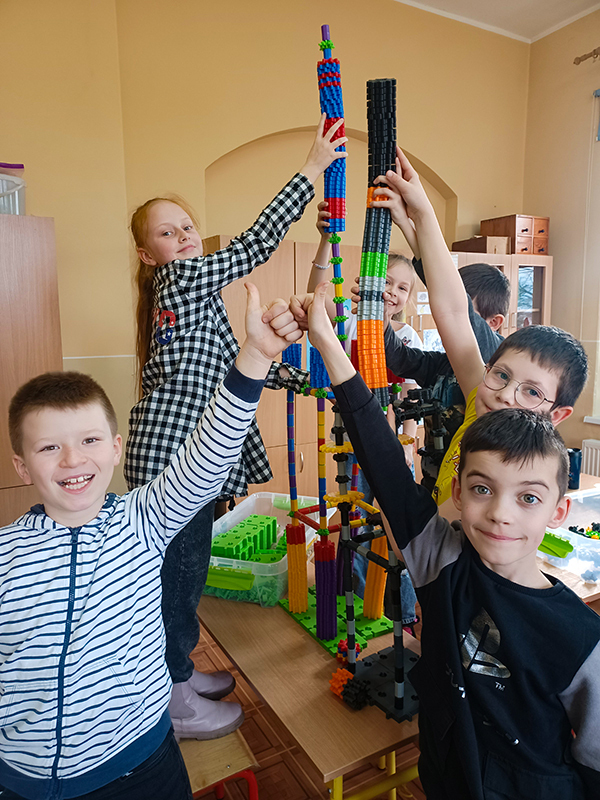 Klocki KORBO świetnie sprawdziły się również podczas zajęć świetlicowych. Uczniowie tworzyli z nich swoje inicjały oraz projektowali budowle według udostępnionej instrukcji. Dzieci współpracowały ze sobą, składając odpowiednie elementy. Przekonały się, że czytanie ze zrozumieniem instrukcji to przydatna umiejętność.