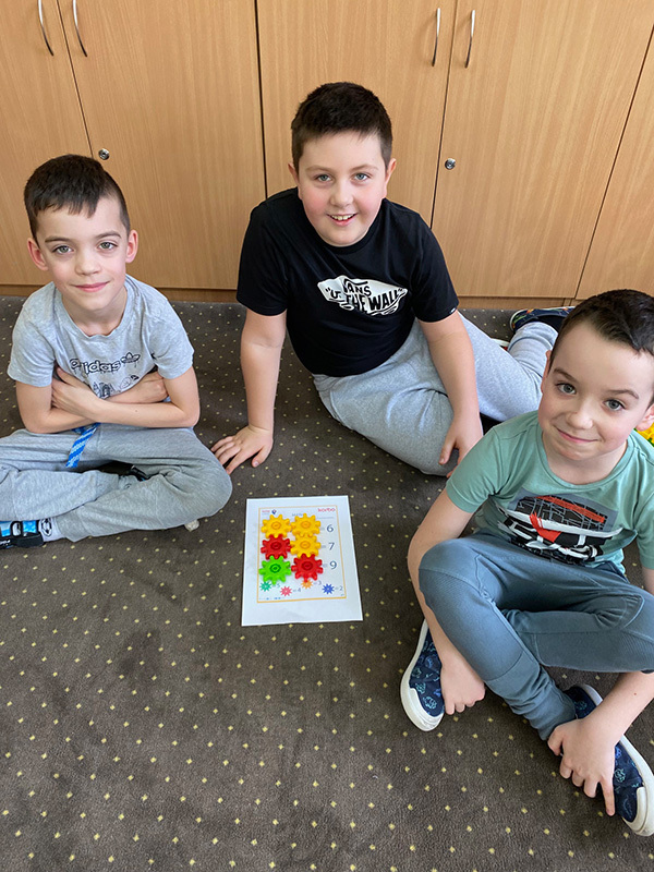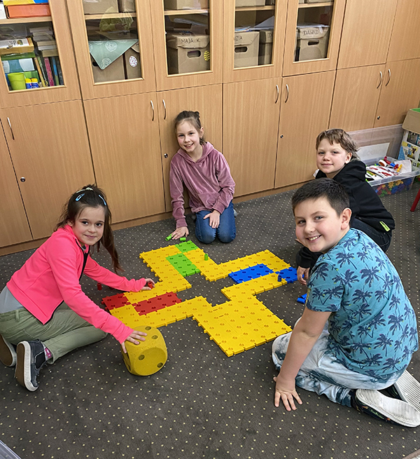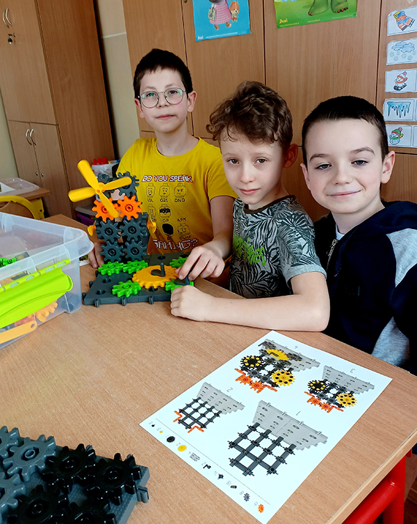 Tym razem podczas kółka zainteresowań konstruowali z klocków KOBRO gry planszowe: „Kółko i krzyżyk", „Chińczyk" oraz „Statki"; natomiast w czasie zajęć edukacji polonistycznej okazały się one idealnym narzędziem do rozwijania umiejętności ortograficzno-gramatycznych.