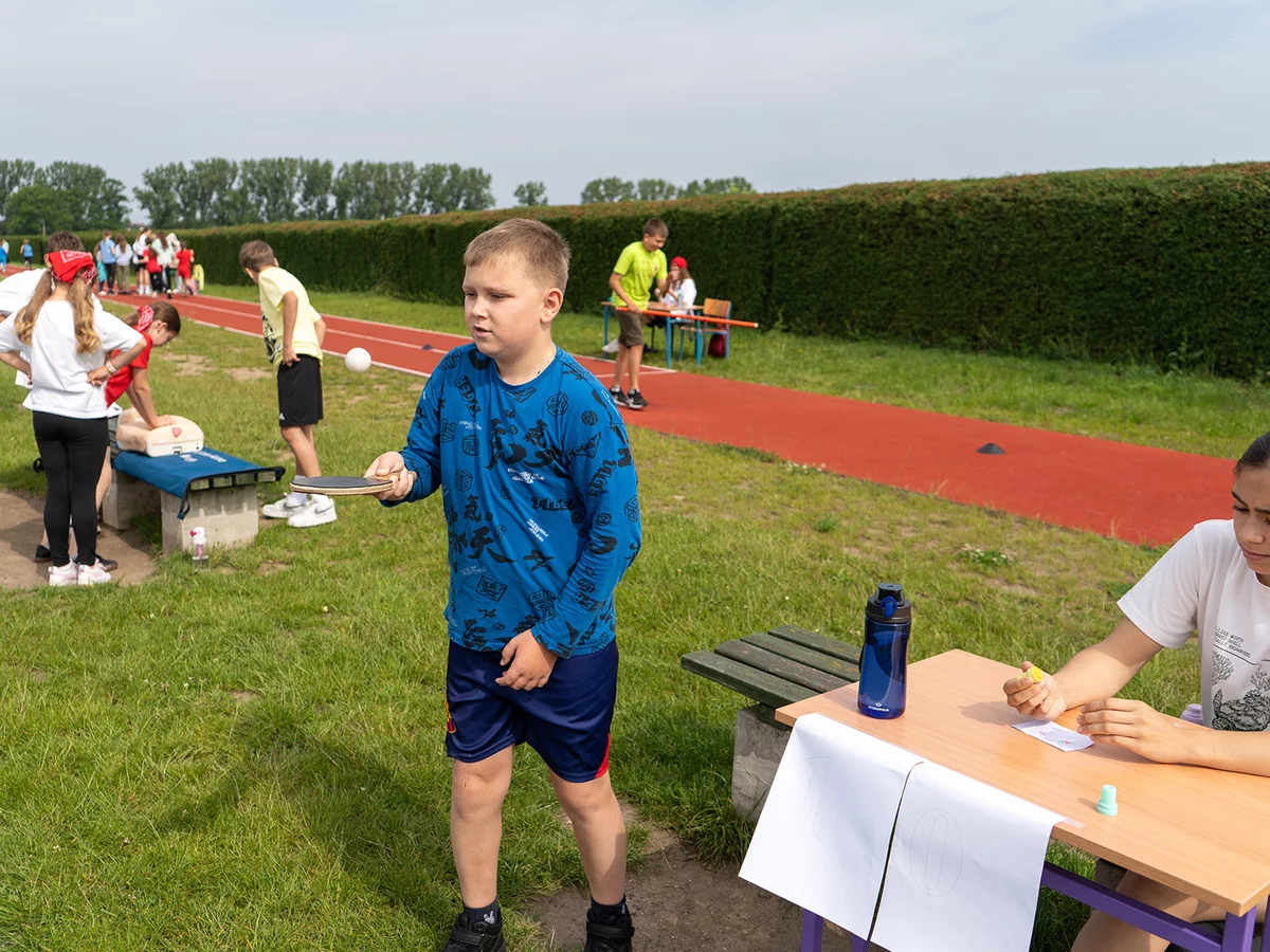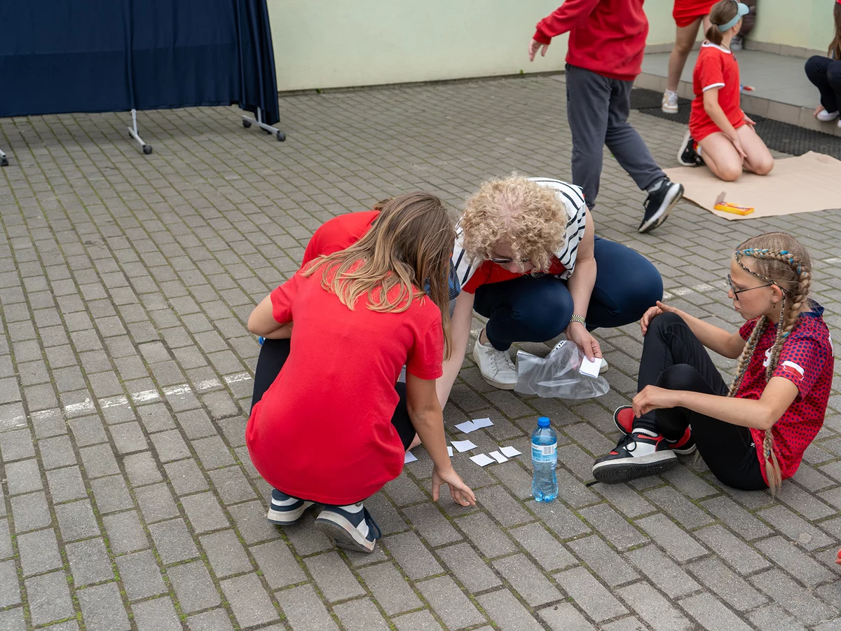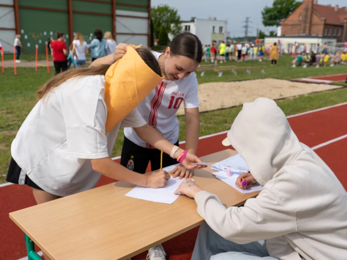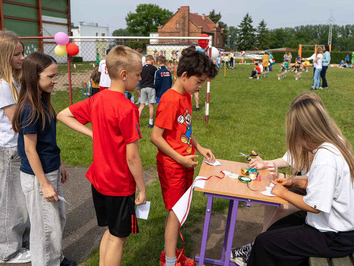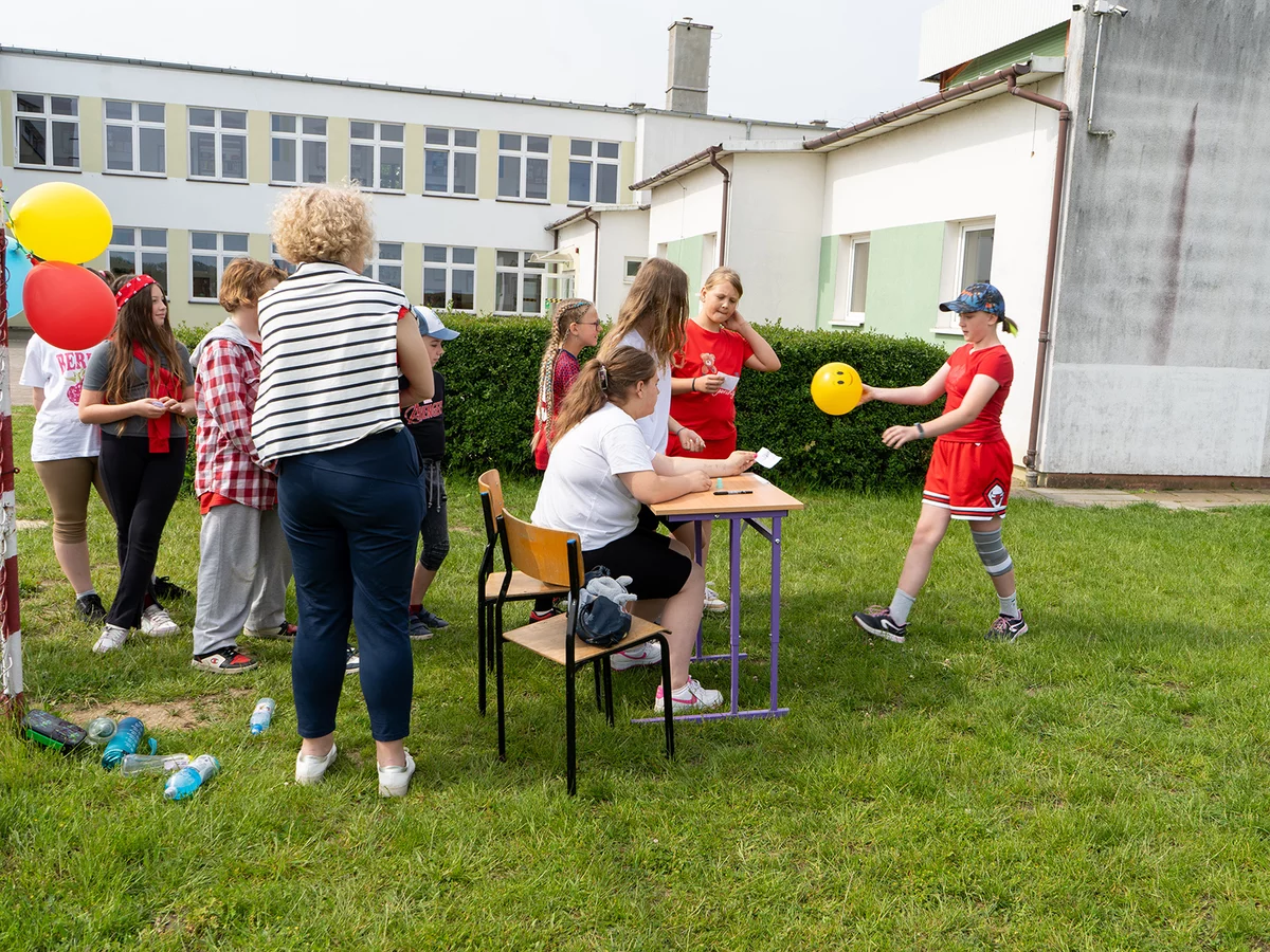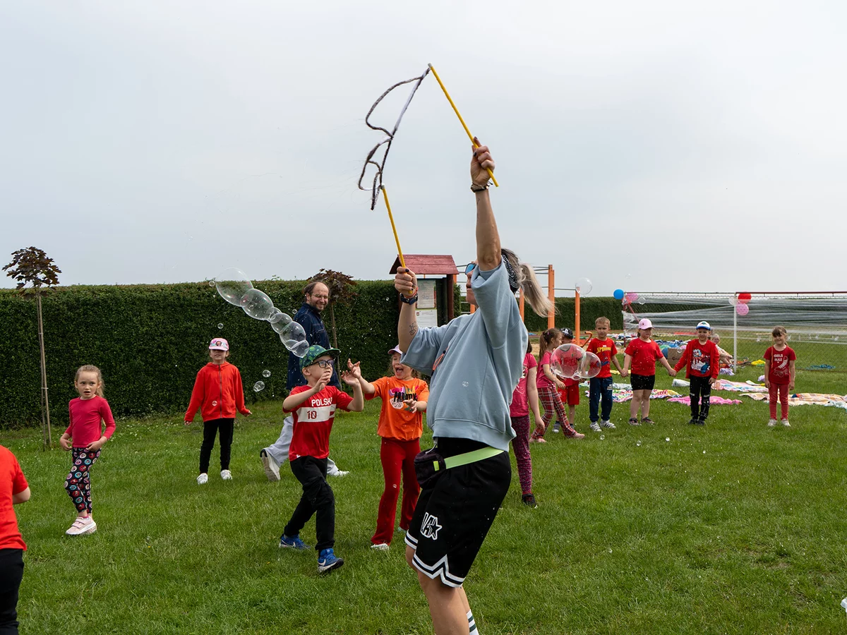 Dzieci miały okazję sprawdzić swoje siły w różnych konkurencjach sportowych i zręcznościowych, rywalizując ze sobą w duchu fair play, a jednocześnie bawiąc się doskonale. Następnie młodsi uczniowie mogli puszczać bańki mydlane oraz wziąć udział w konkursie „Nauczyciel oczami dziecka", natomiast starsi podziwiali fotografie swoich pedagogów z lat dzieciństwa oraz odgadywali, kogo one przedstawiają.