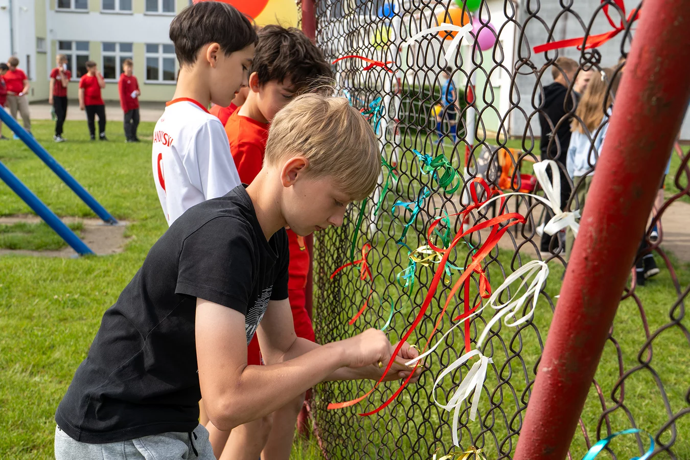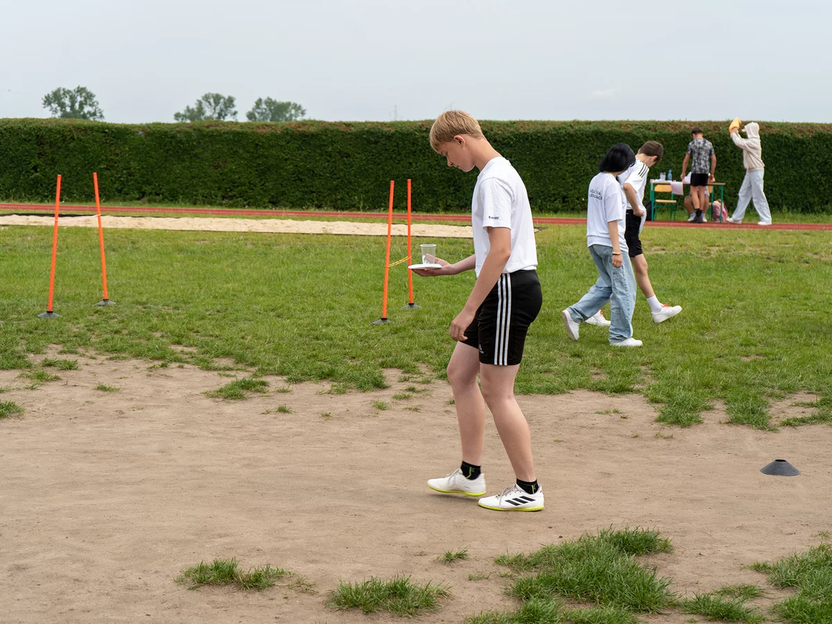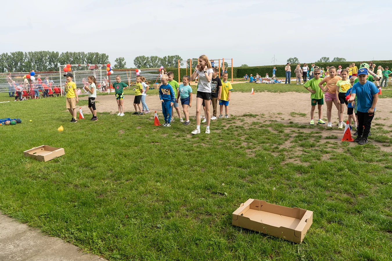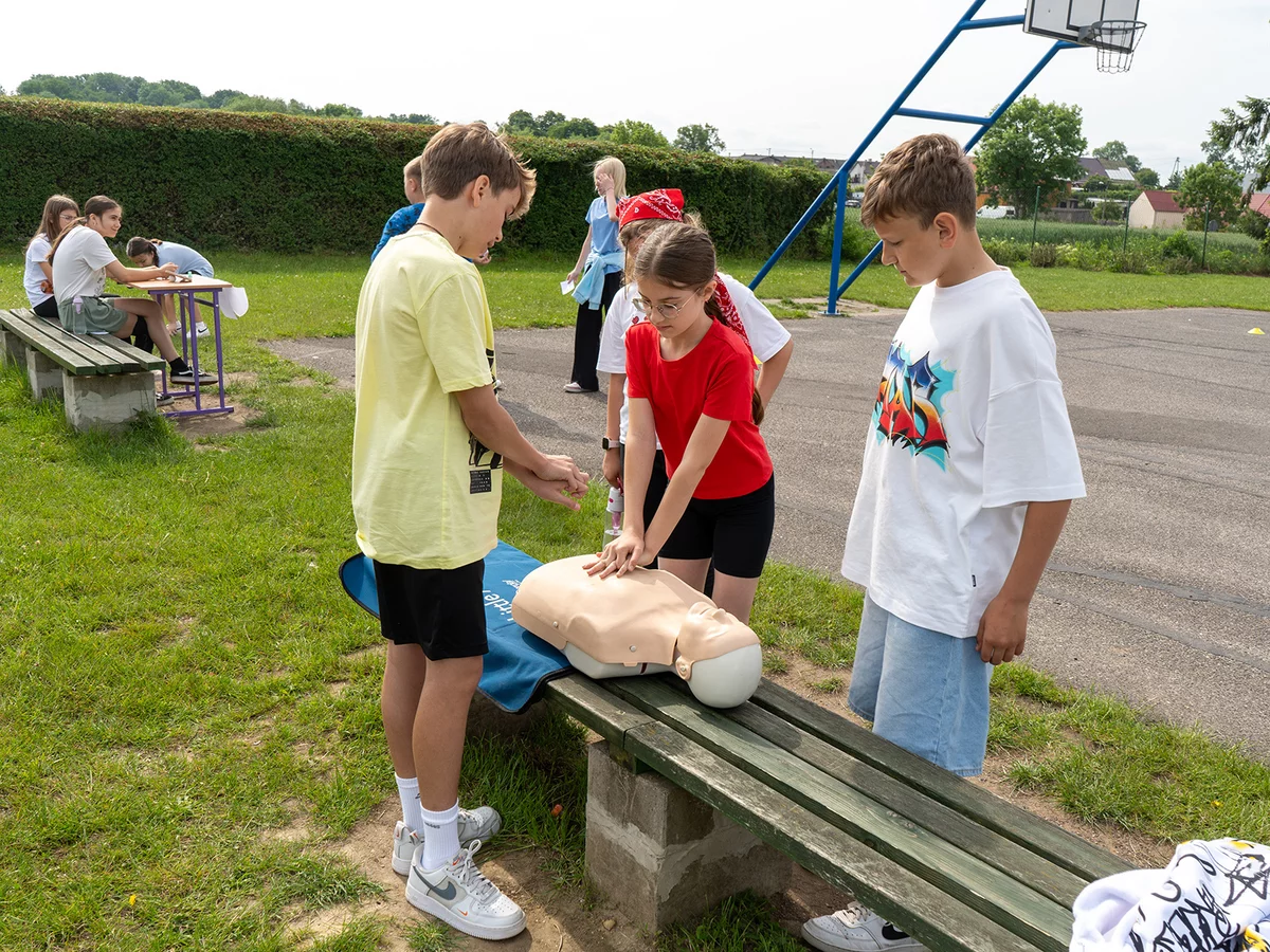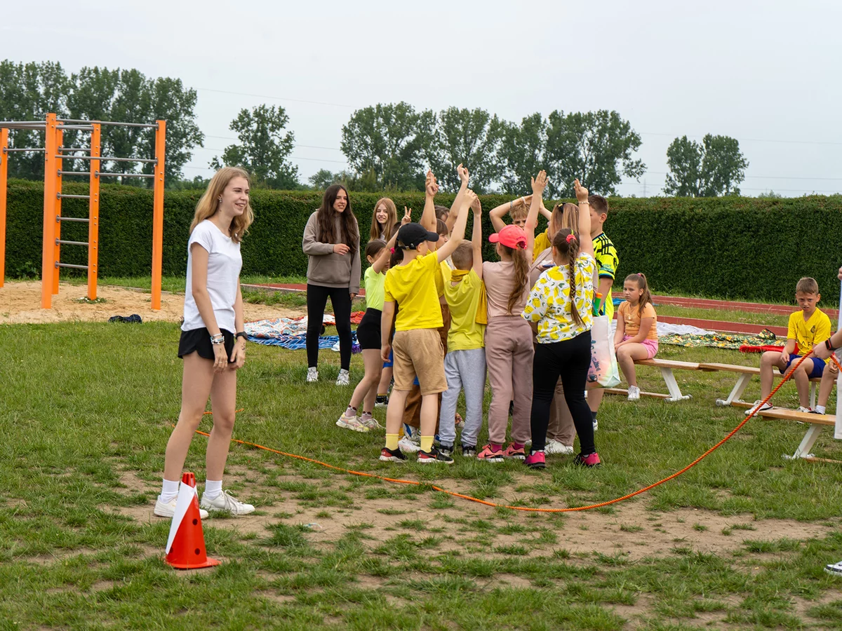 Dzieci miały okazję sprawdzić swoje siły w różnych konkurencjach sportowych i zręcznościowych, rywalizując ze sobą w duchu fair play, a jednocześnie bawiąc się doskonale. Następnie młodsi uczniowie mogli puszczać bańki mydlane oraz wziąć udział w konkursie „Nauczyciel oczami dziecka", natomiast starsi podziwiali fotografie swoich pedagogów z lat dzieciństwa oraz odgadywali, kogo one przedstawiają.