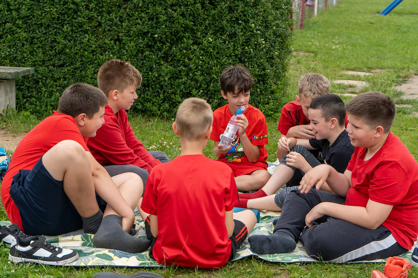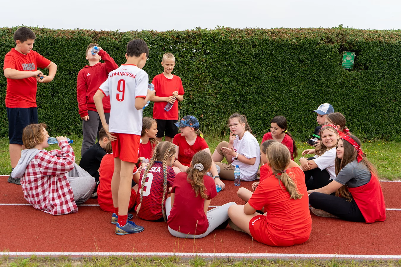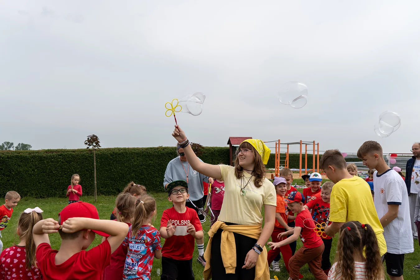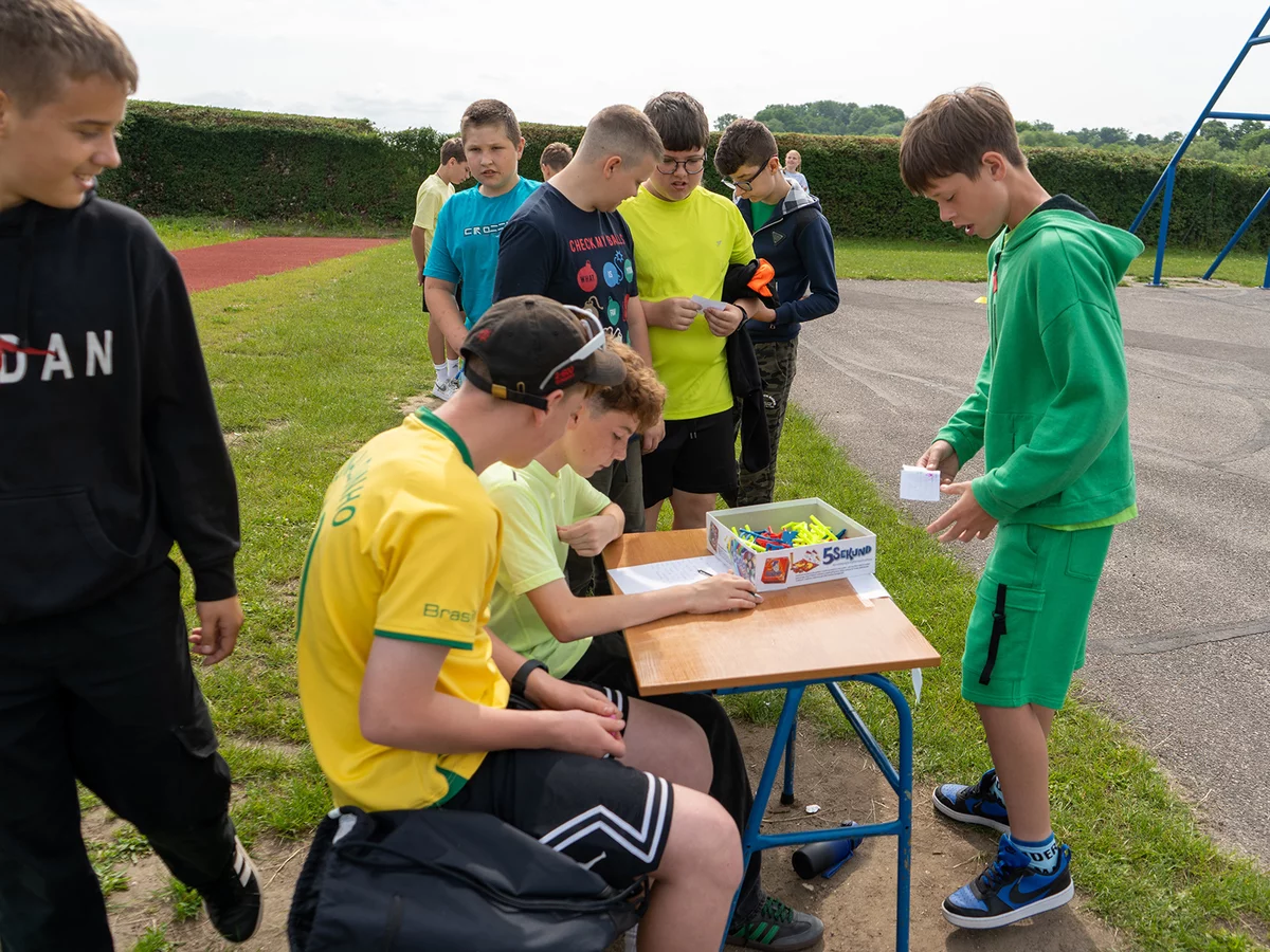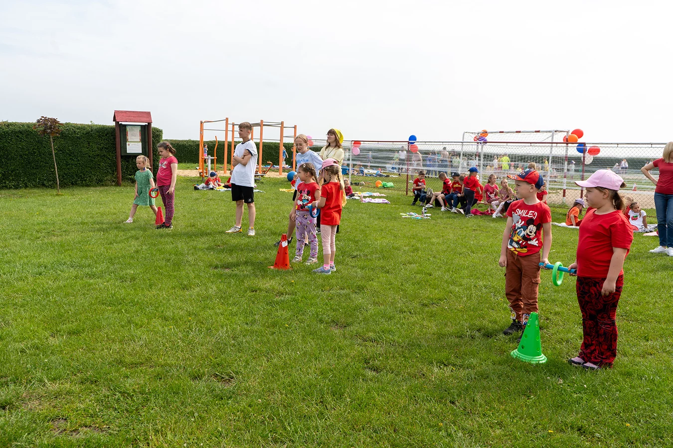 Dzieci miały okazję sprawdzić swoje siły w różnych konkurencjach sportowych i zręcznościowych, rywalizując ze sobą w duchu fair play, a jednocześnie bawiąc się doskonale. Następnie młodsi uczniowie mogli puszczać bańki mydlane oraz wziąć udział w konkursie „Nauczyciel oczami dziecka", natomiast starsi podziwiali fotografie swoich pedagogów z lat dzieciństwa oraz odgadywali, kogo one przedstawiają.