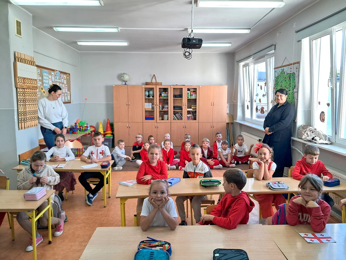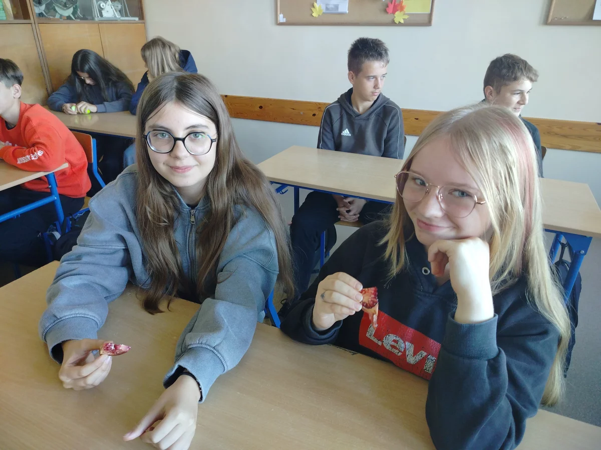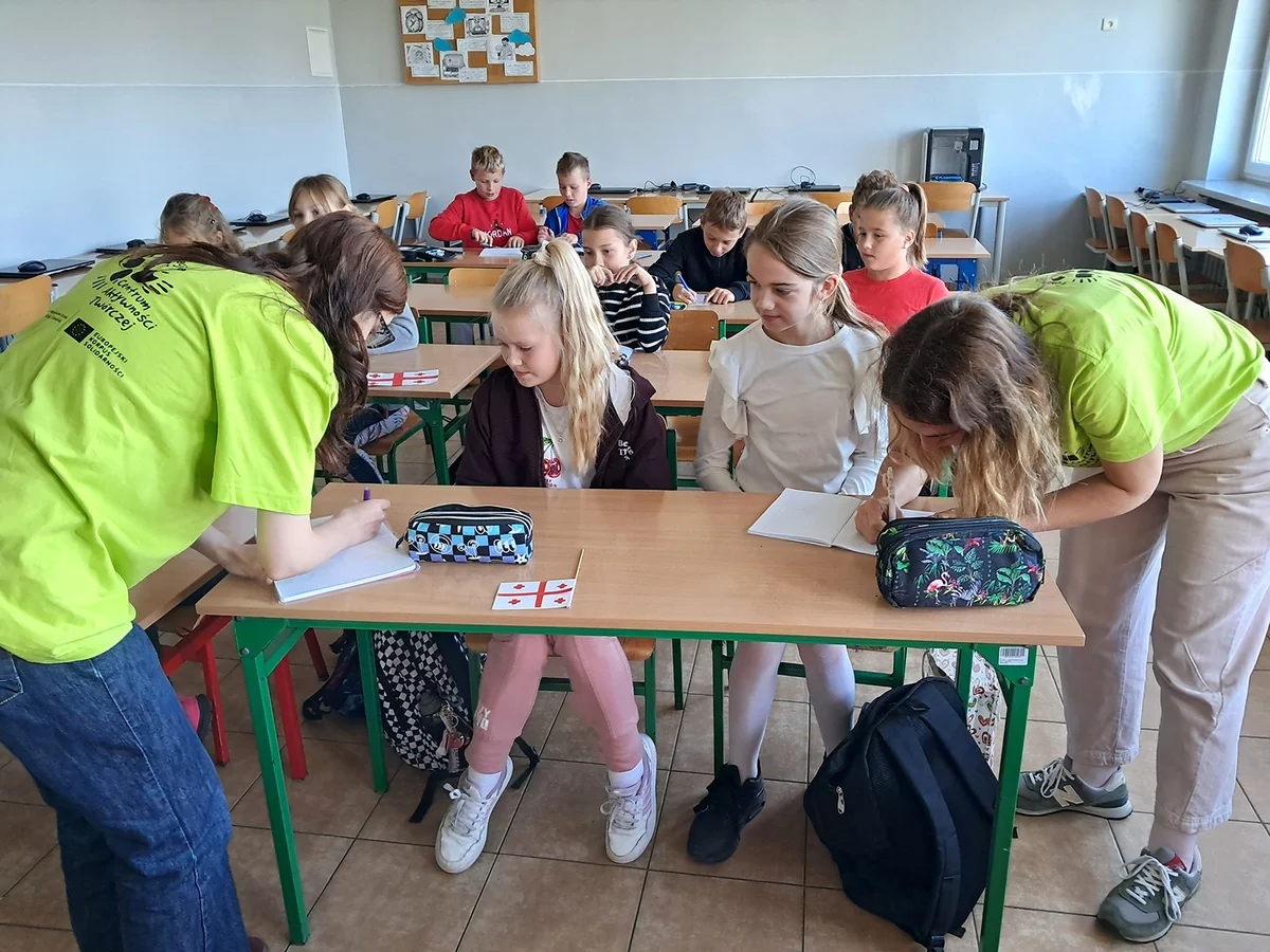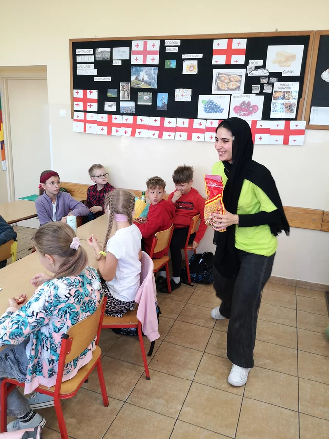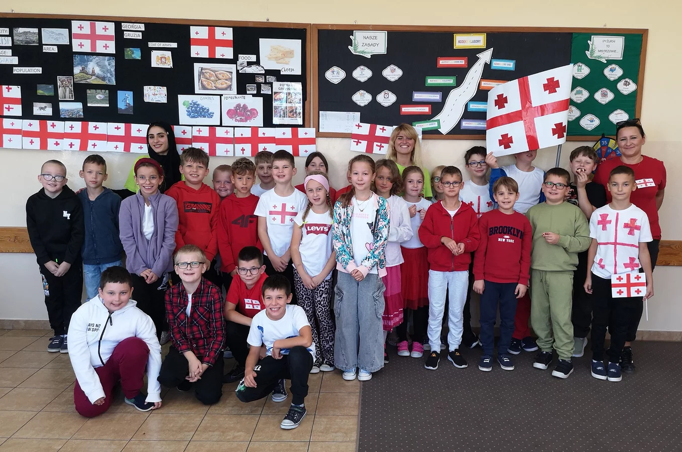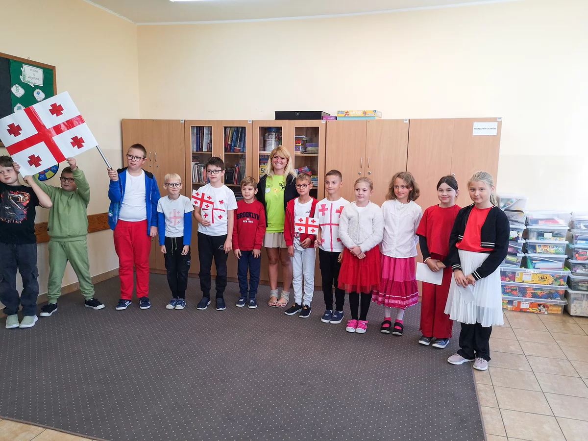 Nasi uczniowie przygotowali się na to spotkanie, przebierając się w barwy gruzińskie i ozdabiając szkołę plakatami na temat Gruzji. Nie lada gratką była też możliwość skosztowania granatu jako tradycyjnego owocu Gruzji oraz orzeszków prosto z Jordanii. Dzień spędzony w towarzystwie tak miłych gości z pewnością zaliczymy do udanych, a wrażenia ze spotkania na długo pozostaną w naszej pamięci.