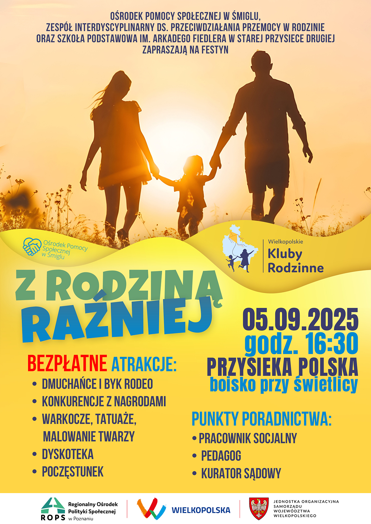 Zapraszamy do udziału w festynie rodzinnym, który odbędzie się 5.09.2025 r. od godziny 16.30 na terenie boiska przy świetlicy w Przysiece Polskiej.