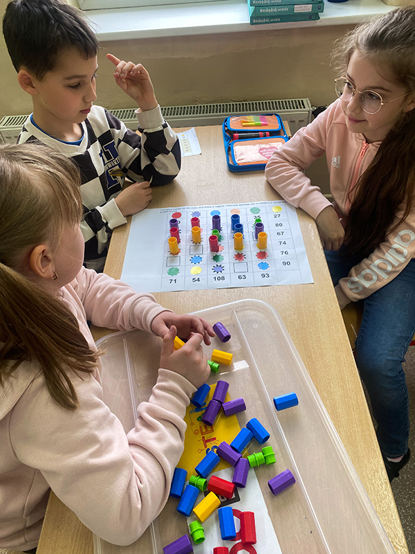 Dzieci wykorzystują klocki Korbo na zajęciach dydaktycznych oraz w zabawach konstrukcyjnych w czasie przerw.