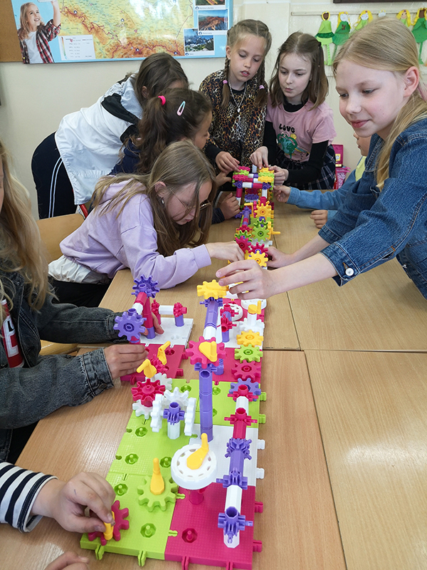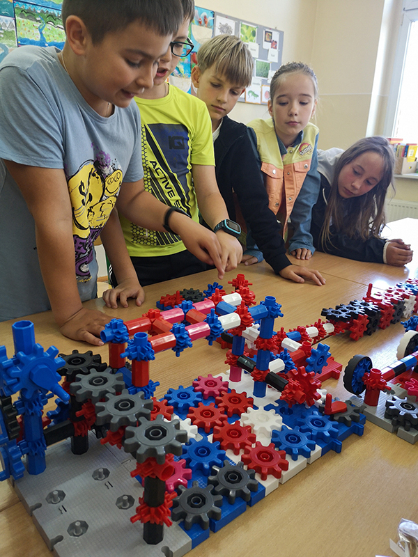 Kolejny miesiąc z pomocami zakupionymi w ramach programu „Laboratoria Przyszłości” pokazał, że najmłodsi uczniowie mają bogatą wyobraźnię i duże umiejętności konstrukcyjne.