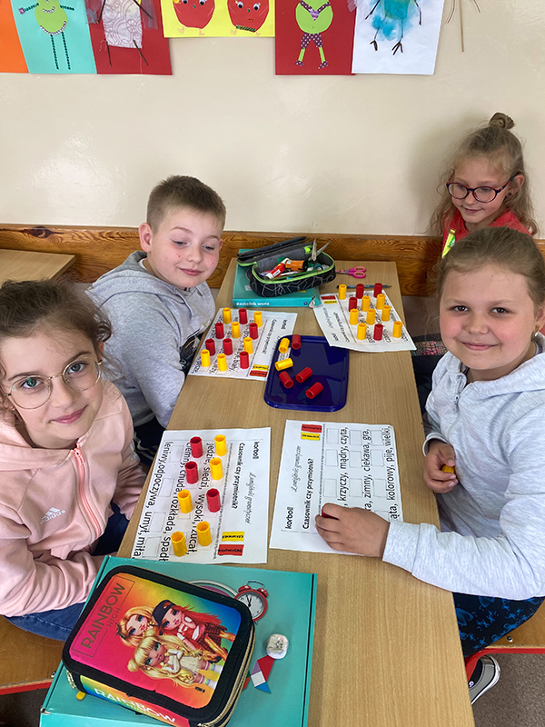 W maju uczniowie klasy 3aP, realizując projekt ekologiczno- zdrowotny, stworzyli z klocków ścieżkę zdrowia z przyrządami do ćwiczeń; na zajęciach dydaktyczno-wyrównawczych w klasie 1aP wykorzystano je do wykonania kolekcji i zbiorów. Natomiast dzieci z klasy 2aP stosowały klocki Korbo przy omawianiu zagadnienia „części mowy” oraz doskonaleniu umiejętności dodawania i odejmowania w zakresie 100.