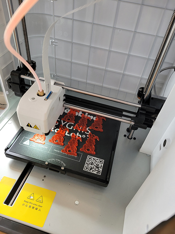 Tym razem dowiedzieli się, jak działa drukarka 3D. Z wielkim zaciekawieniem obserwowali, jak powstaje w niej breloczek w kształcie zajączka. Każde dziecko otrzymało taką zawieszkę z okazji Świąt Wielkanocnych.