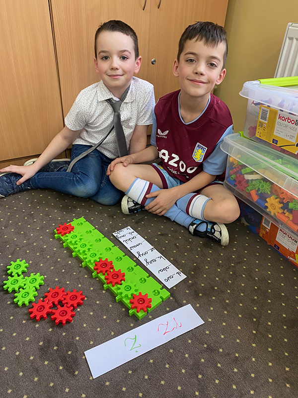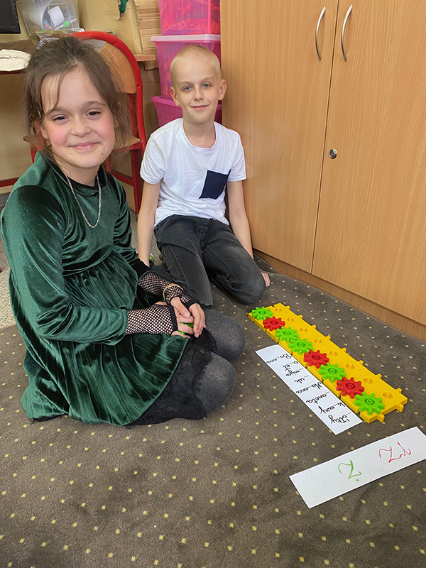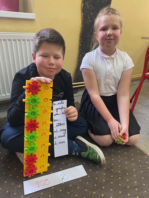W trakcie zajęć w szerokim zakresie wykorzystywane były klocki Korbo – najmłodsi konstruowali z nich różne budowle, a także utrwalali zasady ortograficzne.