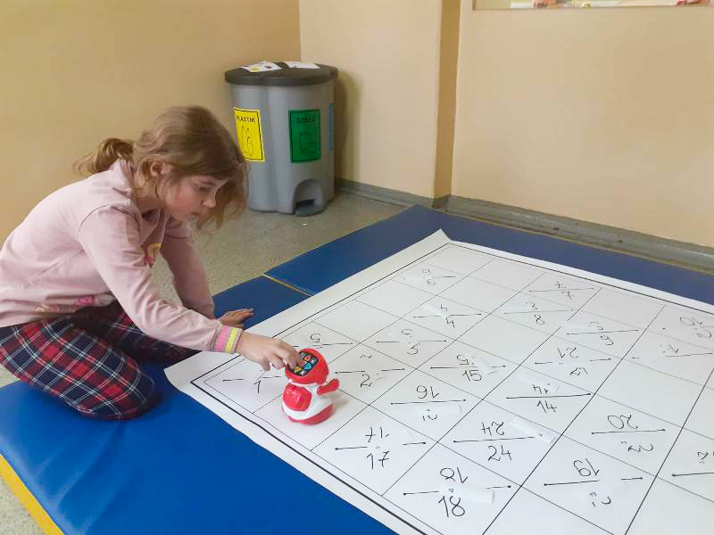 Podczas zajęć logopedycznych uczniowie korzystali z robota SUPER DOC. Okazał się on doskonałym narzędziem do rozwijania percepcji wzrokowej, orientacji przestrzennej, a przede wszystkim do utrwalania prawidłowej wymowy głosek opozycyjnych.