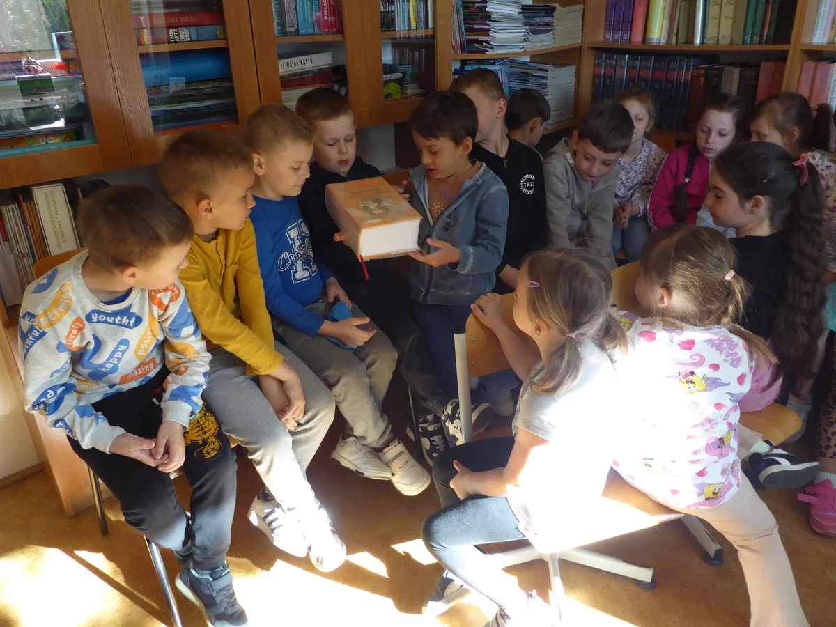 Podczas zajęć dzieci zobaczyły wyjątkowe egzemplarze książek ze zbiorów biblioteki – najstarsze (liczące nawet sto lat!), a także najgrubszą, najmniejszą, największą, książkę obrazkową, komiks; miały okazję przekonać się, jak różnorodne mogą być formy książek.