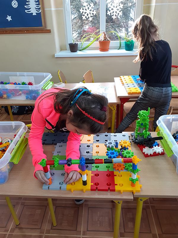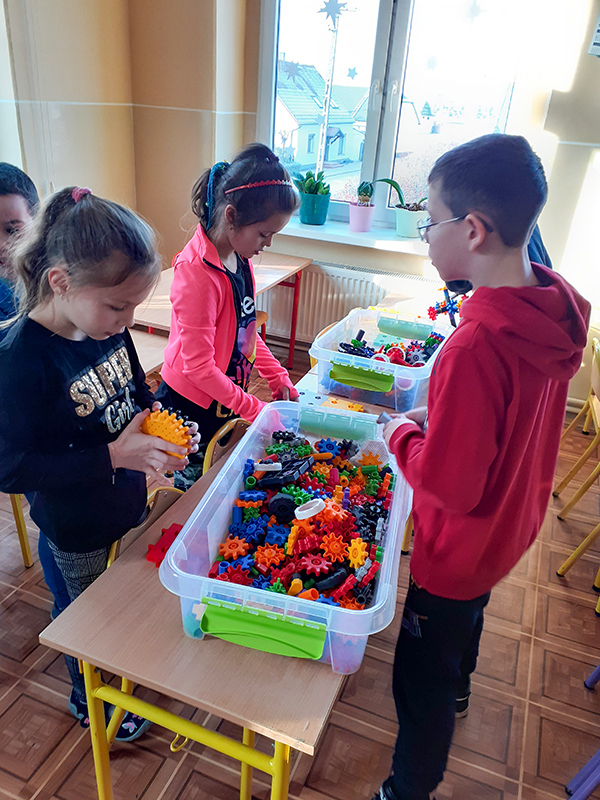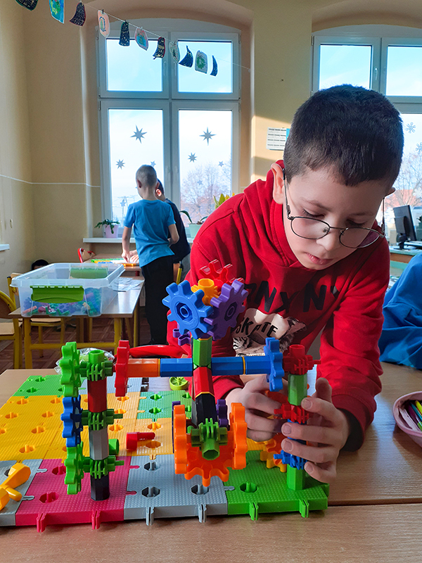 W ramach zajęć świetlicowych uczniowie wykorzystywali klocki Korbo do konstruowania własnych budowli. Jednym z tematów przewodnich było „wesołe miasteczko”. Stworzono pełne fantazji karuzele, huśtawki i inne atrakcje.