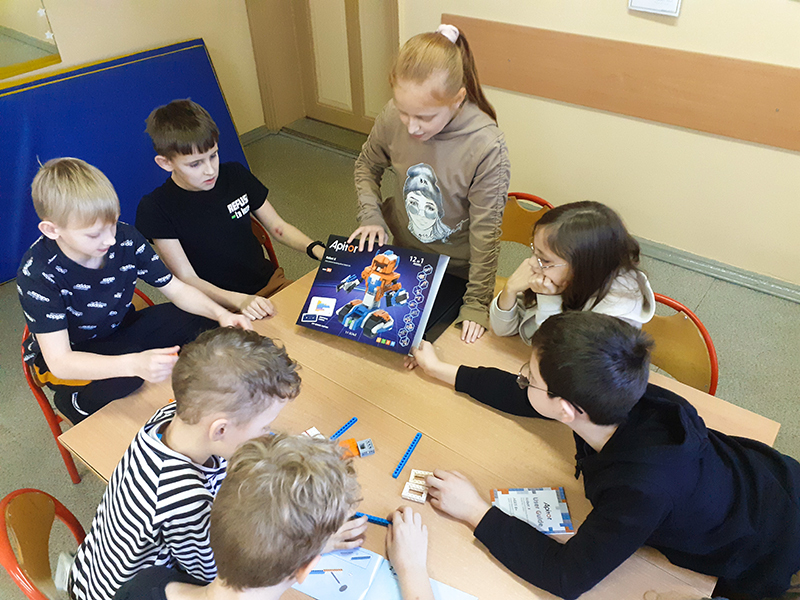 Uczniowie kl. 2W i 3W podczas kółka zainteresowań konstruowali według instrukcji samochody wyścigowe z klocków Apitor X. Zajęcia te sprawiły im wiele radości. Dzieci z dużym zaangażowaniem rozwijały swoje inżynierskie zainteresowania.