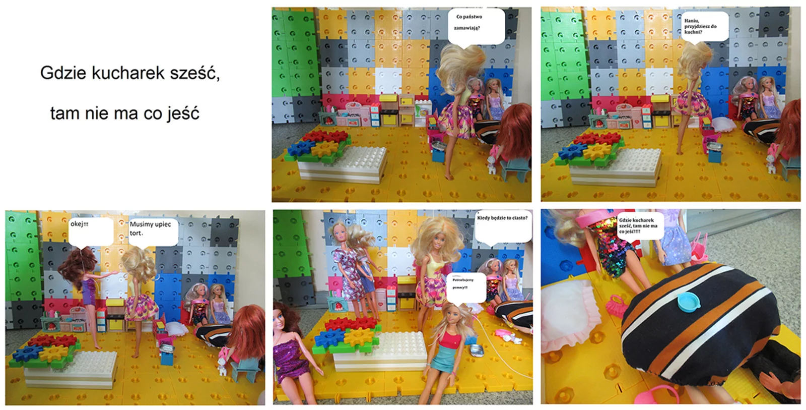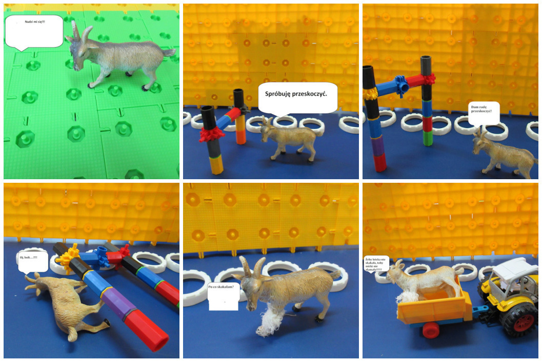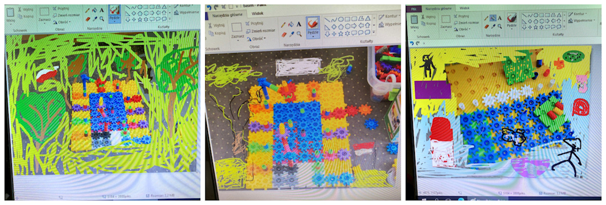 Trzecioklasiści natomiast zbudowali z klocków scenografię do wybranego przysłowia, które mieli zwizualizować. W dalszej kolejności wykonali serię zdjęć, z których w programie Paint stworzyli ciekawy komiks