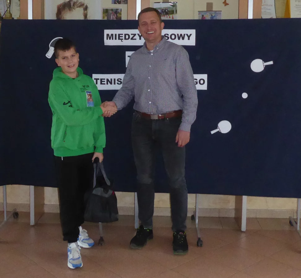 Nasz szkolny turniej otrzymał wsparcie radnego gminy Śmigiel pana Krzysztofa Łącznego, który przywiózł nagrodę dla triumfatora turnieju – Kuby Malaka - oraz upominki dla szkoły, wyrażając swoje uznanie dla pracy całego zespołu uczniów i nauczycieli. Pan Łączny, który również odnosił sukcesy w grze w tenisa stołowego, podkreślił, jak ważna jest promocja aktywności fizycznej wśród dzieci i młodzieży.