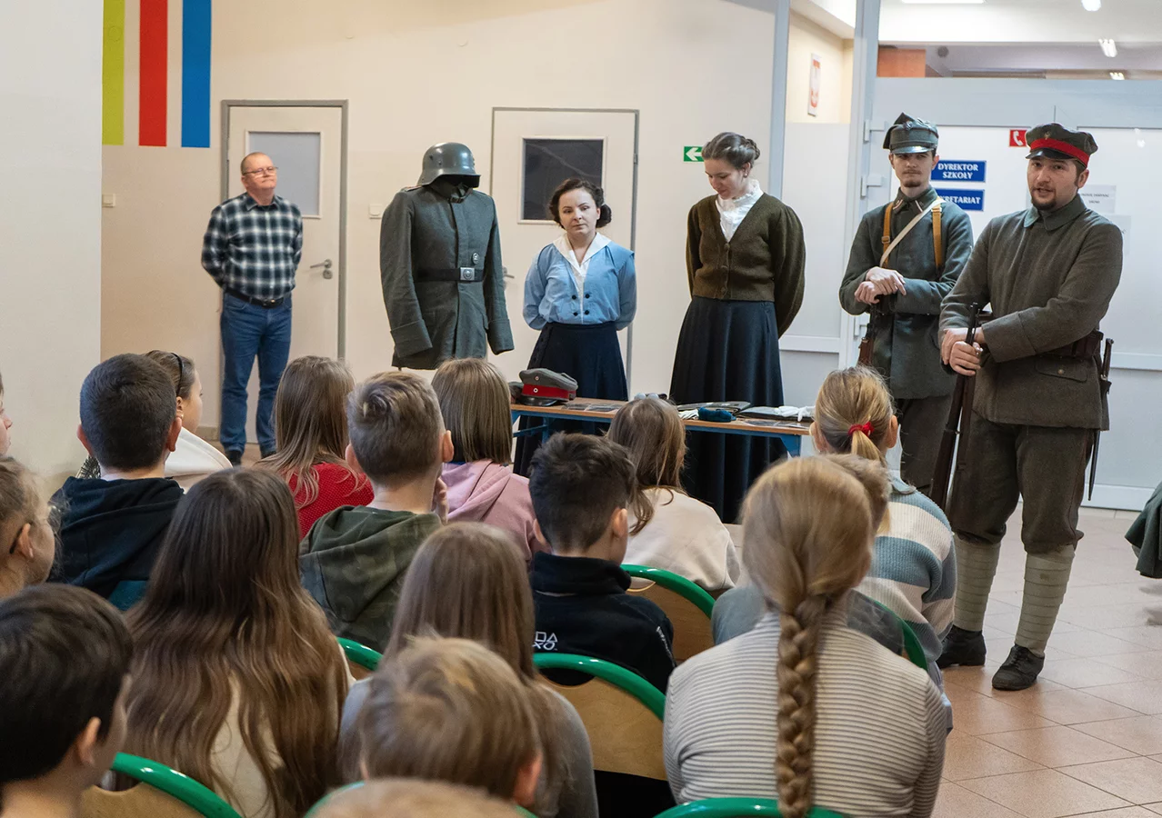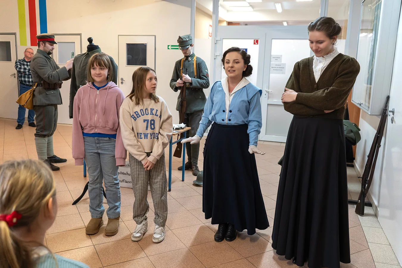 W dniach od 7 do 10 stycznia 2025 roku obchodziliśmy w naszej szkole 106. rocznicę wybuchu Powstania Wielkopolskiego. Pierwszego dnia gościliśmy Grupę Rekonstrukcji Historycznej „Tschuff”. Dzięki opowieściom jej członków uczniowie nie tylko dowiedzieli się o najważniejszych wydarzeniach z powstania, ale też usłyszeli o uzbrojeniu, umundurowaniu i wyposażeniu Wojsk Wielkopolskich z okresu Powstania Wielkopolskiego oraz o tym, jak znaczącą rolę w powstaniu odegrały kobiety. Spotkanie to było dobrą lekcją historii o wydarzeniach z przełomu lat 1918/1919.