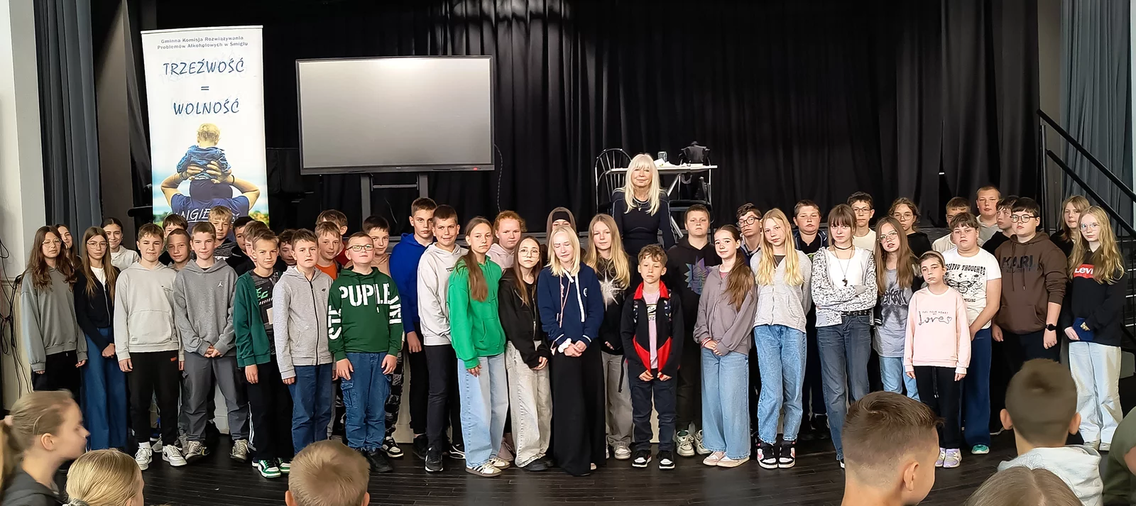 30 maja w Centrum Kultury w Śmiglu uczniowie klas: piątej i szóstej mieli okazję uczestniczyć w ważnym i inspirującym spotkaniu z sędzią Anną Marią Wesołowską - znaną ze swojej działalności na rzecz edukacji prawnej dzieci i młodzieży. Tematem przewodnim wydarzenia było hasło: „Naucz, wytłumacz, pomóż”, które stało się punktem wyjścia do rozmowy o zagrożeniach współczesnego świata, formach przemocy i konsekwencjach łamania prawa.