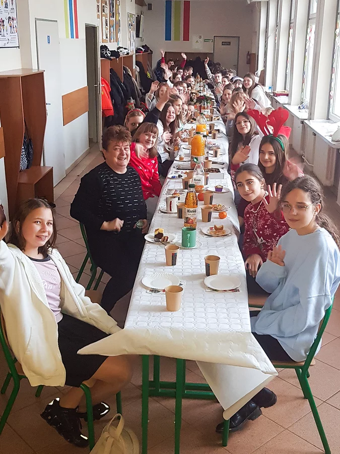 12 grudnia odbyło się świąteczne spotkanie Szkolnego Klubu Wolontariusza, podczas którego wspólnie kolędowano, złożono sobie życzenia oraz podsumowano pierwszy okres działalności. Na stołach znalazły się wypieki przygotowane przez uczniów.