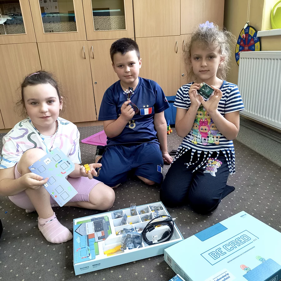 Zajęcia wzbudziły też ciekawość dzieci na temat mikrokontrolerów, które można dziś znaleźć w wielu przedmiotach – na przykład w zabawkach, pilotach, samochodach, pralkach czy nawet w urządzeniach pomagających lekarzom. Uczniowie mieli okazję obejrzeć Be Creo Kit – edukacyjny zestaw z mikrokontrolerem, który w przystępny sposób wprowadza w świat programowania i elektroniki.