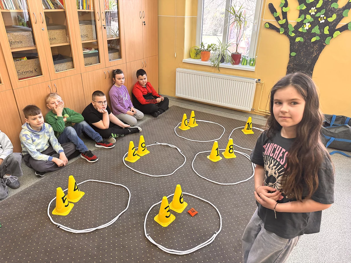 Prawdziwą furorę zrobiły również matematyczne kalambury, które dostarczyły wszystkim mnóstwo frajdy. Jak się przekonaliśmy, nawet najbardziej abstrakcyjne definicje da się genialnie zobrazować gestem czy ruchem ciała. Przedstawienie „ułamka niewłaściwego” lub „kąta prostego” bez użycia ani jednego słowa? Choć brzmi to karkołomnie, nasi podopieczni poradzili sobie z tym wyzwaniem śpiewająco, udowadniając swoją ogromną kreatywność.
