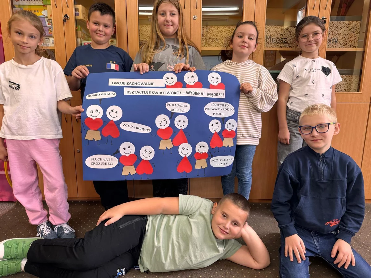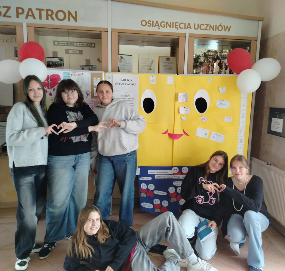 Tydzień Przeciwdziałania Przemocy Rówieśniczej to doskonała okazja, aby budować atmosferę wzajemnego szacunku i empatii w naszej społeczności. W związku z tym Samorząd Uczniowski zaproponował konkurs na najciekawszy plakat ,,Jak przeciwdziałać przemocy". Znalazły się na nich informacje o pozytywnych zachowaniach, które chcemy promować. Na korytarzu szkolnym powstała wystawa prac uczniowskich oraz tablica życzliwości; uczniowie mogli umieszczać miłe słowa, pozdrowienia lub podziękowania. Podczas aktywnych przerw młodzież wspólnie tańczyła „belgijkę”. Młodsi również aktywnie włączyli się w akcję - wykonali piękne plakaty, papierowe serca, a na dziedzińcu szkolnym w Wonieściu powstało wielkie, kredowe serce.