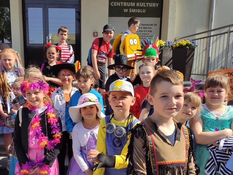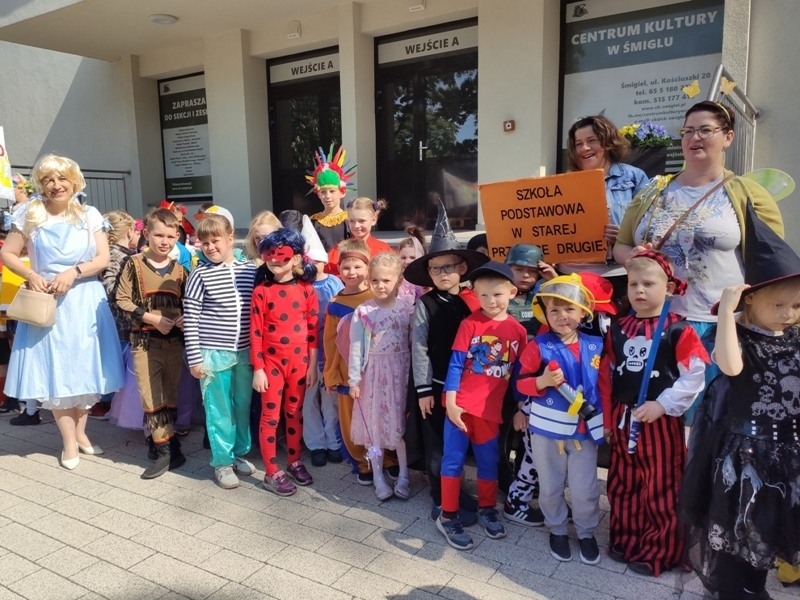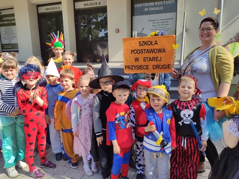Z naszej szkoły udział w imprezie wzięło 40 uczniów z oddziałów przedszkolnych oraz z klas 1-3 ze Starej Przysieki Drugiej oraz z filii w Wonieściu. Dzieci uczestniczyły w barwnym korowodzie przebierańców - który przeszedł ulicami Śmigla - oraz w pikniku, gdzie czekał na nich słodki poczęstunek i wspólna zabawa.