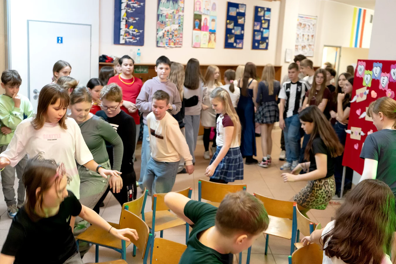 Uczniowie szukali swoich „połówek” - każdy otrzymał serduszko z numerem i mógł odnaleźć osobę z identycznym oznaczeniem. Utworzono również walentynkową tablicę życzeń umożliwiającą uczniom i nauczycielom składanie serdecznych pozdrowień oraz podziękowań wybranym osobom. Ponadto chętni ubierali się w czerwone stroje. Nie zabrakło także poczty walentynkowej. W trakcie przerw rozbrzmiewały romantyczne utwory, które jeszcze bardziej podkreślały romantyczną atmosferę.