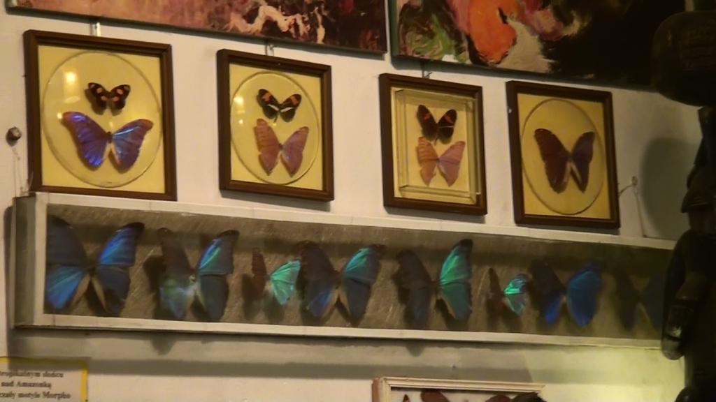 W kolejnych salach zwiedzający podziwiali oryginalne eksponaty przywiezione z Ameryki Północnej i Południowej, Afryki i Azji. Uwagę przyciągały rzeźby, maski obrzędowe, indiańskie trofea ludzkich głów, instrumenty muzyczne, ale i eksponaty zwierzęce: olbrzymie pająki ptaszniki, skorpiony, kajmany. Zachwyt wzbudziła kolekcja przepięknych tropikalnych motyli: Morpho, Caligo czy Patula Valkeri z Madagaskaru oraz zbiór muszli. Centralne miejsce w muzeum zajmuje olbrzymia gablota
